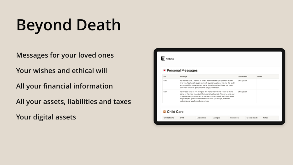 Beyond Death: A Template for Managing Your Affairs After Your Passing (Notion)